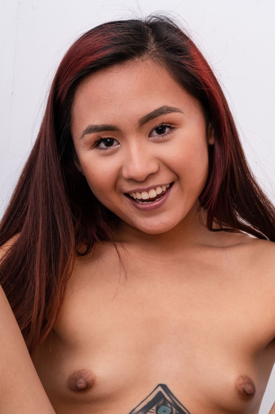 Petite hot Asian babe shows off her sweet pussy