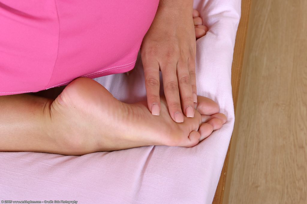 - Description: Kyara masturbates her shaved pussy on the bed and sucks her toes.